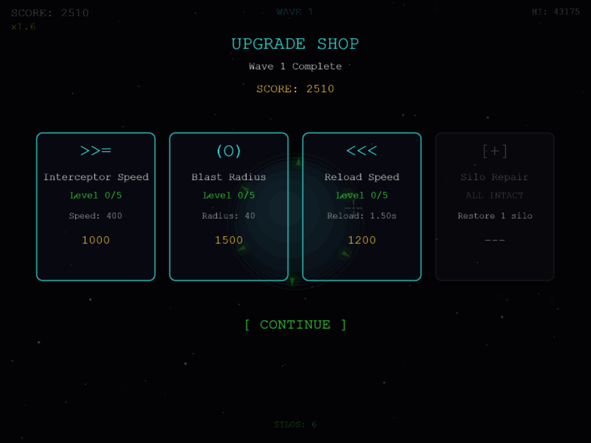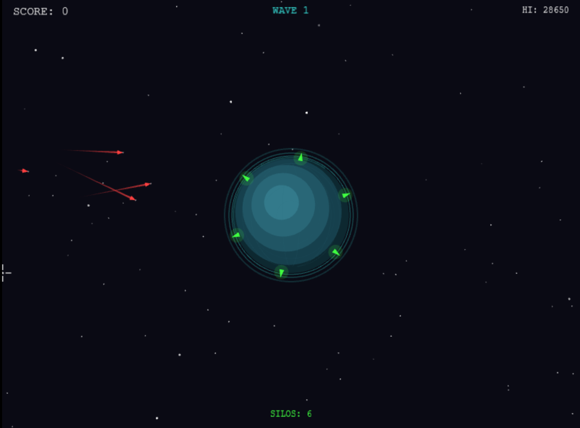 - Click anywhere to fire an interceptor from the nearest ready silo
